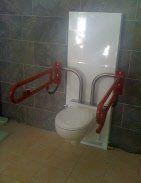 und das WC fährt bis zu einer Höhe, die das Aufstehen ganz leicht macht! Auf Wunsch sind hier fast alle Maße möglich! Auch stabile Haltegriffe oder die Toilettenpapierrolle fahren mit!